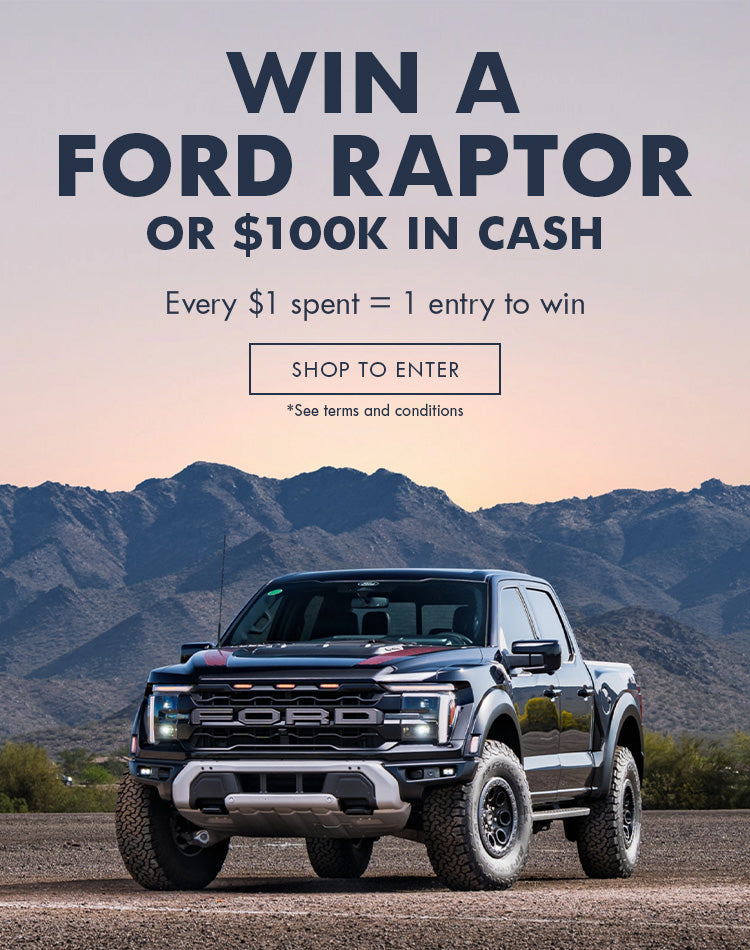 Win a Ford Raptor at Fresh Clean Threads | Each Dollar Spent is an Entry*