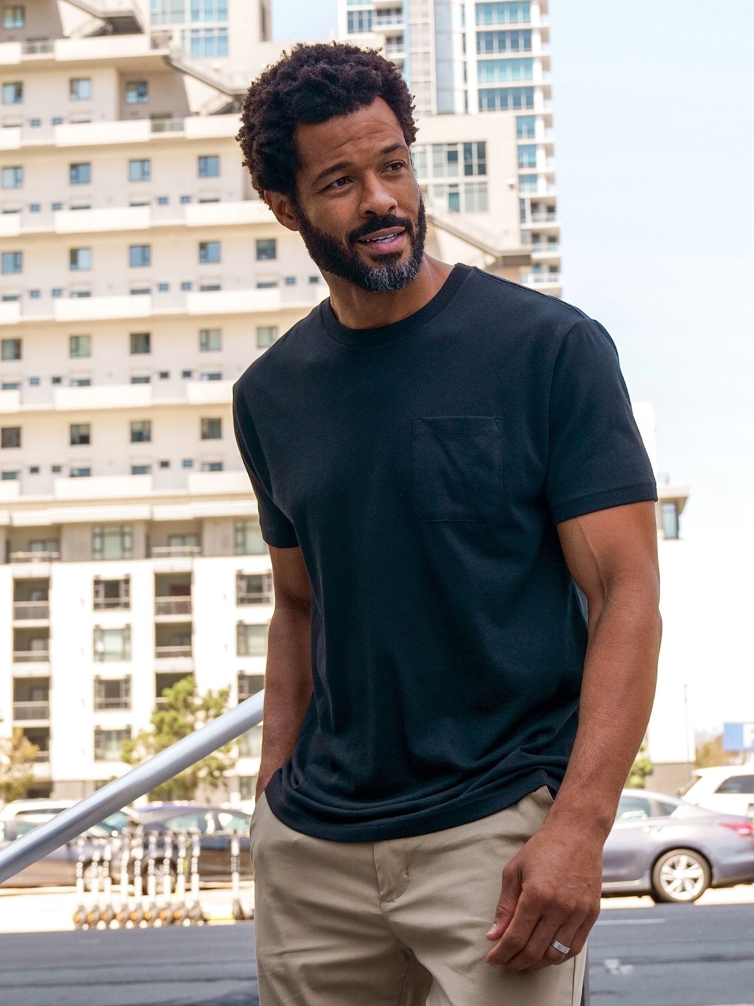 Fashion meets function in a timeless twist on our bestseller. Our Black Pocket Tee gives you our usual offerings, everything from style to comfort, and goes a little farther with a place to put your goods, whatever they may be — gum, toothpicks, phone numbers...