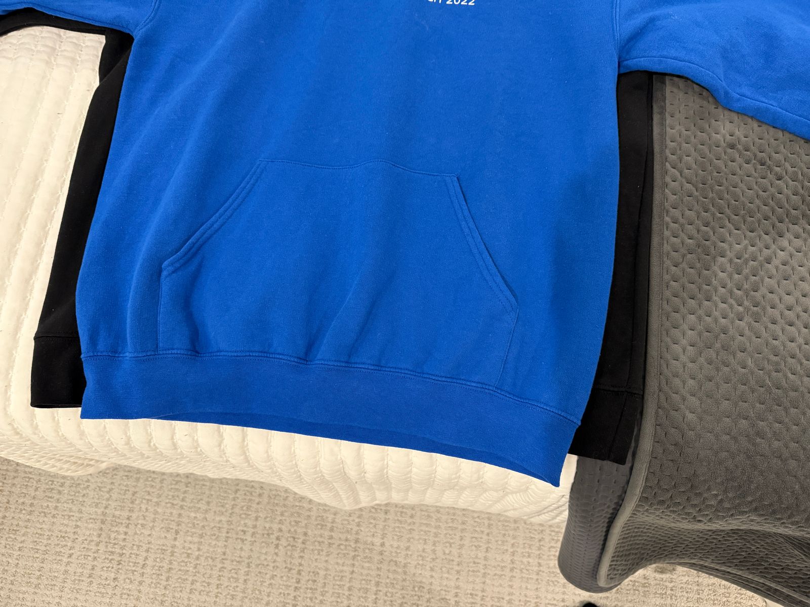 I recently purchased the black and navy blue hoodies. Super comfortable and both fit great.