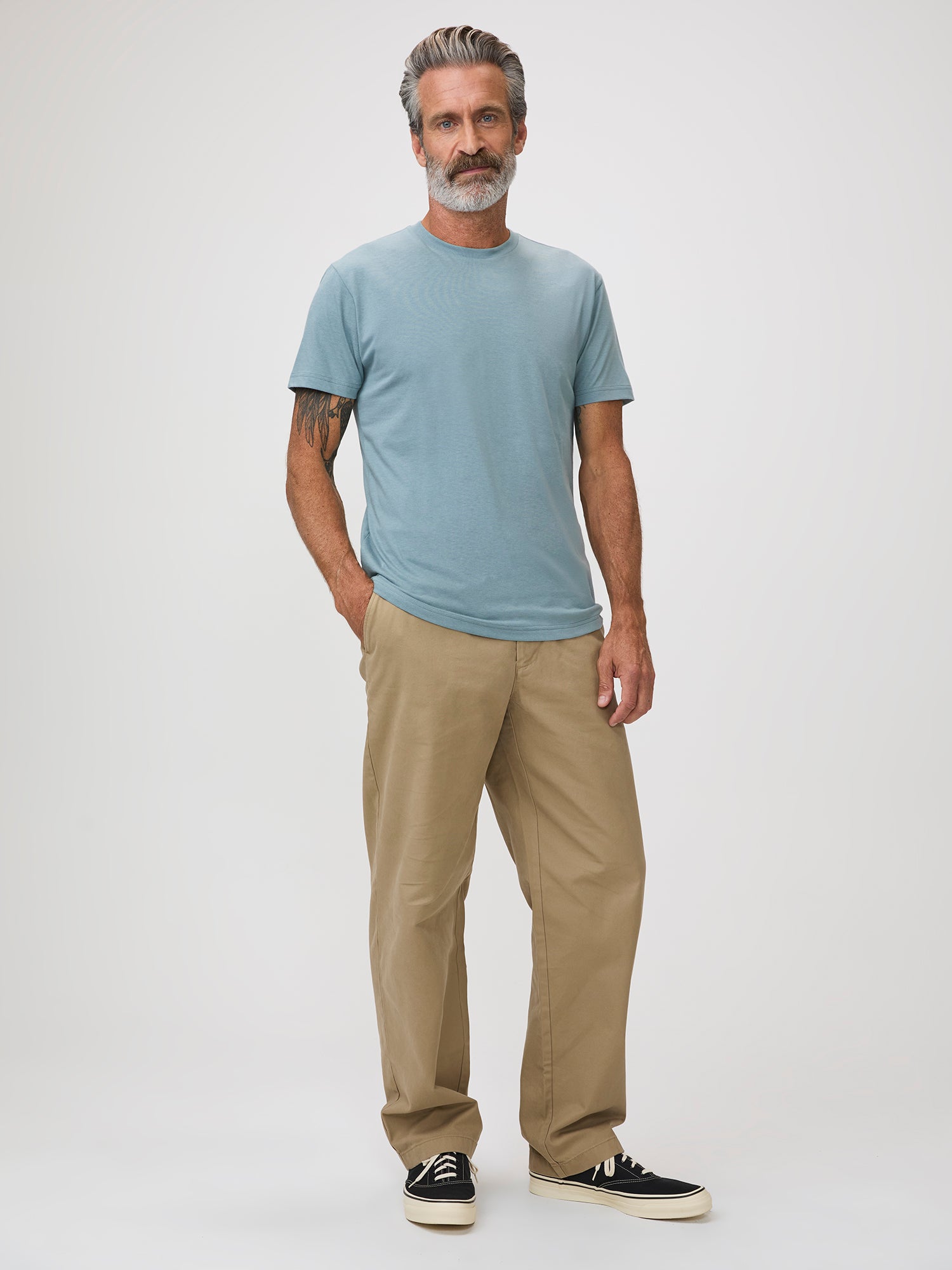 Harbor Mist is that color that feels like a coastal morning, calm, clean, and effortlessly fresh. It's the perfect t-shirt color for guys who want something more interesting than basic gray but don't want to overthink it. Dress it up, dress it down, just wear it everywhere.