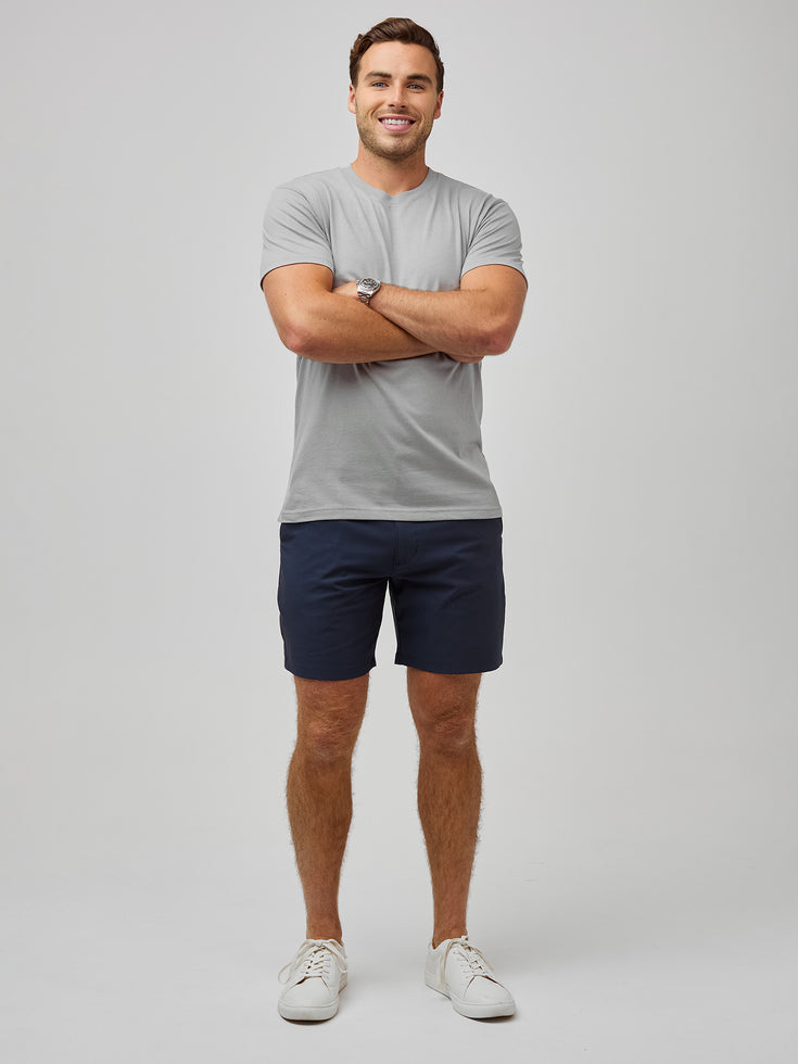 Pair your pebble grey tee with everyday shorts