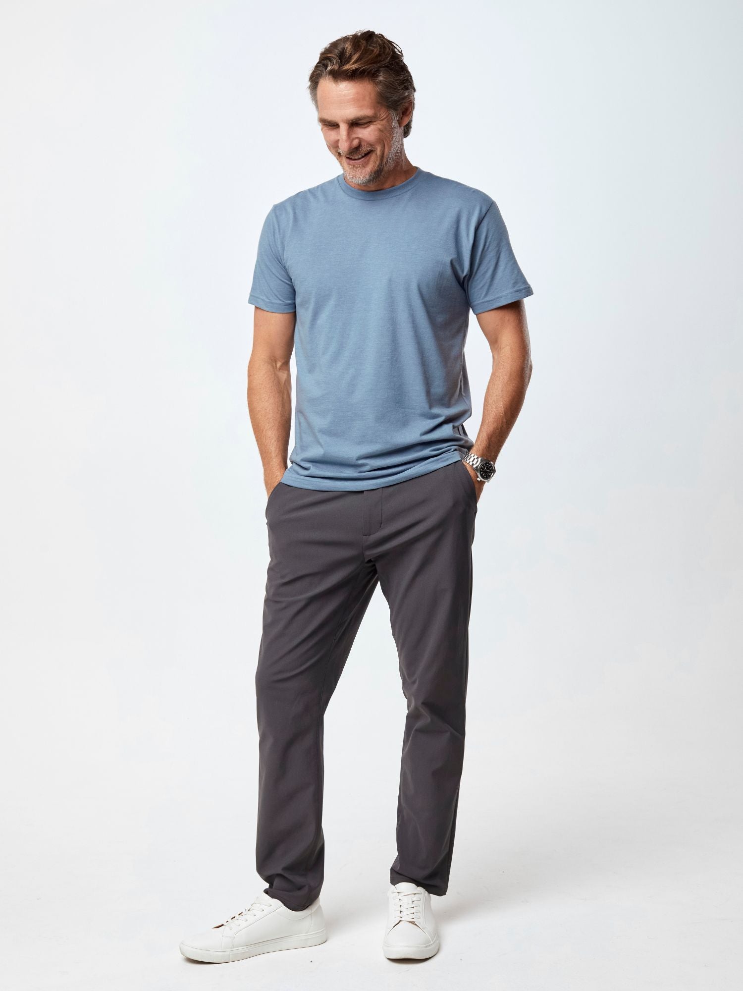 Our Stratusoft™ crew neck fits true to size with a modern cut that's neither too slim nor too boxy. We've obsessed over the fit for a decade, refining everything from shoulder seams to hem length based on feedback from over 1.5 million customers. The result is a tee that works for different body types without compromising style or comfort. If you're between sizes, we recommend sizing up for a more relaxed fit or staying true to size for our intended fit.